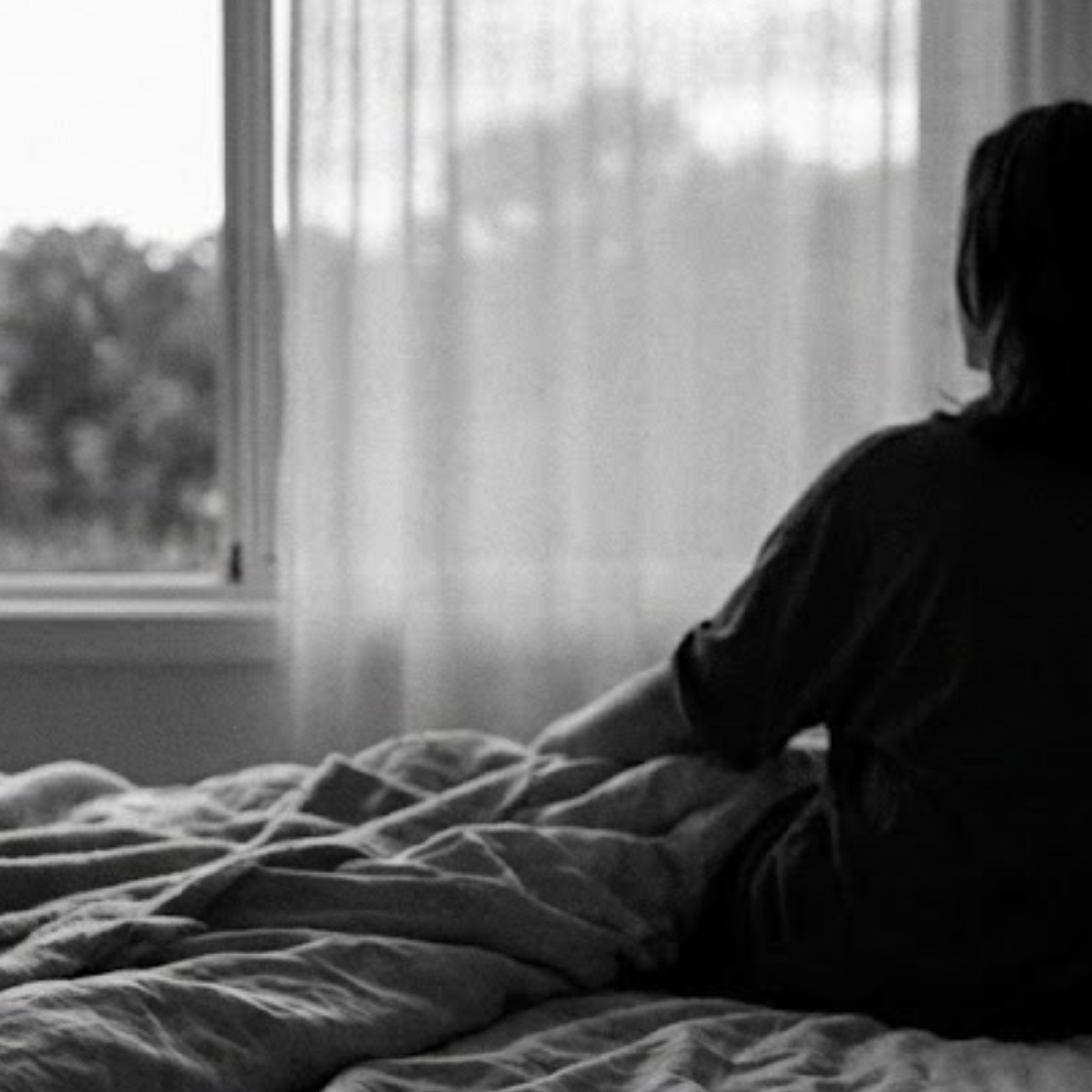 który siada na brzegu łóżka